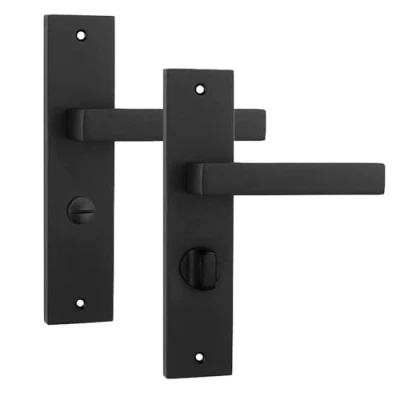 Decoranddecor Lumina Bathroom Thumb Turn Lever Door Set in Matt Black Aluminium for Internal Handles with Backplate, Fusing Art Deco Elements and Contemporary Appeal Modern Homes