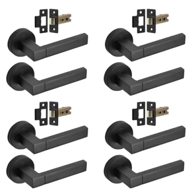 Decoranddecor Lumina Matt Black Internal Door Handles Aluminium Handle Sets for Interior Doors Sleek Design with Mortice Latch Homes and Offices 4 Pack