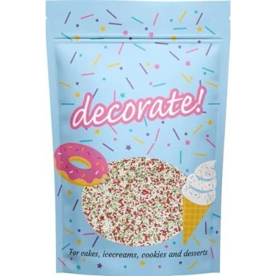 CHRISTMAS THEMED CAKE DECORATIONS - This mix includes natural green, red and white 100s and 1000s with a matt finish. The perfect decoration for any Christmas Eve party, Christmas Day desserts or festive event, like an office Christmas party FESTIVE MIX - This 500g pouch contains Christmas sprinkles in seasonal colours. Natural ingredients leading to a softer mix of colours ALL OCCASIONS - Perfect for adding a finish touch to cakes, muffins and ice cream VERSATILE PRODUCT - Our exquisite sprinkles are an excellent choice for embellishing cupcakes, cakes, cookies, macarons, biscuits, and doughnuts. Elevate your cake drip creations by adding these gorgeous sprinkles as a finishing touch HAND PACKAGED - Our UK-based headquarters lovingly packs each decorate! resealable pouch to ensure you get the perfect mix. The colours on the printed pouch may occasionally vary from the image shown, Manufacturer: Truly (UK) Ltd