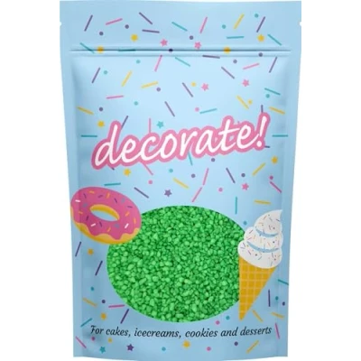 SUGAR CRUNCH - A pretty flavoured crunchy sugar. Create a dramatic encrusted effect on large cakes and sprinkle on cupcakes for a decadent decoration. Add to ice cream and cookies for an extra burst of flavour CRUNCHY TEXTURE - This 500g pouch contains bright green, mint flavoured sugar ALL OCCASIONS - Perfect for adding a finish touch to cakes, muffins and ice cream VERSATILE PRODUCT - Our exquisite sprinkles are an excellent choice for embellishing cupcakes, cakes, cookies, macarons, biscuits, and doughnuts. Elevate the allure of your cake drip creations by adding these gorgeous sprinkles as a finishing touch HAND PACKAGED - Our UK-based headquarters lovingly packs each decorate! resealable pouch to ensure you get the perfect mix. The colours on the printed pouch may occasionally vary from the image shown, Manufacturer: Truly (UK) Ltd