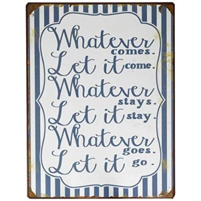 Decorative Hanging Painted Metal Wall Plaque/Sign " Whatever comes, let it come...