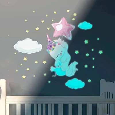 Decorative Wall Stickers for Children Parent (Glow in The Dark Unicorn)