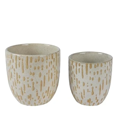 Charming stoneware planter in white, adorned with colourful dots. Adds a fun pop of color to any indoor or outdoor space. Perfectly sized at dia13.00cm x H13.00cm. Durable and easy to clean, perfect for home or office use.