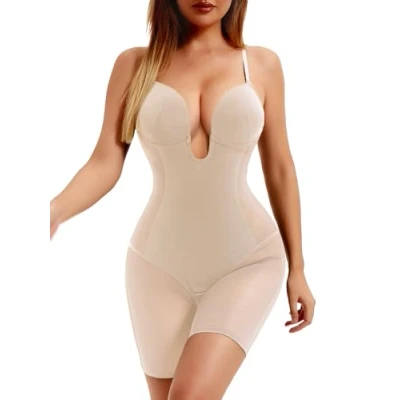 Full Body Shapewear: The shapewear bodysuit made of double-layer fabrics to provide compression on waist. Our tummy control bodysuit for women will tighten your fat down to give you have a hourglass figure. It made for comfortable everyday wear and to smooth out your tummy! It fits great under all types of clothing Thigh Shapewear Bodysuit: The thigh compression design ensures this mid-thigh slimmer keep thighs from chafing and will not roll down or up. With super stretch comfortable to wear all day U Plunge Shapewear Features: Full shapewear bodysuit with wired U plunge and comfort coverage soft padded cups, it will push up your breast softly and provide comfortable support as a basic bodysuit bra tank tops. Bulid-in bra design can help you lift your boobs easily so you don't need to wear your another bras Adjustable Straps And Open Crotch Design:The body shaper has 2 adjustable and detachable shoulder straps to fit your body perfectly, which is convenient for all kinds of women with different heights to wear. The crotch part has adjustable 3 rows of hooks eyes closure for easy bathroom use How to Choose the Perfect Size: Please measure your waistline, bust and hips to choose your actual and perfect fit size refer to the SIZE CHART before purchase butt lifting shapewear. If you are between 2 sizes, please choose size up for all day comfort. If you have big breasts, we recommend selecting a size up