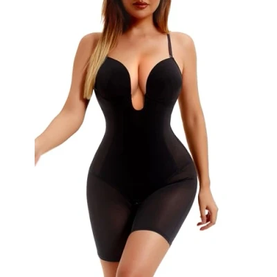 Full Body Shapewear: The shapewear bodysuit made of double-layer fabrics to provide compression on waist. Our tummy control bodysuit for women will tighten your fat down to give you have a hourglass figure. It made for comfortable everyday wear and to smooth out your tummy! It fits great under all types of clothing Thigh Shapewear Bodysuit: The thigh compression design ensures this mid-thigh slimmer keep thighs from chafing and will not roll down or up. With super stretch comfortable to wear all day U Plunge Shapewear Features: Full shapewear bodysuit with wired U plunge and comfort coverage soft padded cups, it will push up your breast softly and provide comfortable support as a basic bodysuit bra tank tops. Bulid-in bra design can help you lift your boobs easily so you don't need to wear your another bras Adjustable Straps And Open Crotch Design:The body shaper has 2 adjustable and detachable shoulder straps to fit your body perfectly, which is convenient for all kinds of women with different heights to wear. The crotch part has adjustable 3 rows of hooks eyes closure for easy bathroom use How to Choose the Perfect Size: Please measure your waistline, bust and hips to choose your actual and perfect fit size refer to the SIZE CHART before purchase butt lifting shapewear. If you are between 2 sizes, please choose size up for all day comfort. If you have big breasts, we recommend selecting a size up