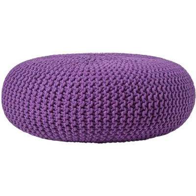 Deep Purple Large Round Cotton Knitted Pouffe Footstool Homescapes