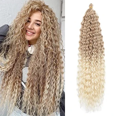 Deep Twist Crochet Hair Water Wave Bundles Synthetic Curly Braiding Extension Ombre Kinky Curl Hairpiece, 22Inch 3 Packs