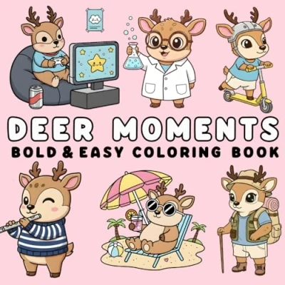 Deer Moments: Beautiful Cute Coloring Pages for Stress Relief Bold and Easy Designs Teens Adults