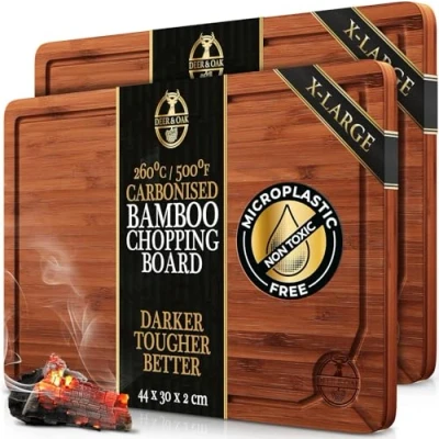 Deer & Oak 2X X Large Carbonised Bamboo Wooden Chopping Board 44x30x2cm, Pre Oiled Premium Wood Kitchen Cutting for Carving Meat or Vegetables
