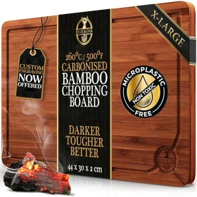 Deer & Oak X Large Carbonised Bamboo Wooden Chopping Board 44x30x2cm, Pre Oiled Premium Wood Kitchen Cutting for Carving Meat or Vegetables