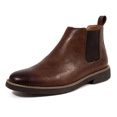 MODERN CHELSEA BOOT LOOK: Contrast stitching and a pull tab added to these men’s dress boots for a twist on a classic CUSHIONED MEMORY FOAM INSOLE: Soft and pillowy against your foot and exceptionally comfortable. A formal style that wears like a casual boot PULL ON BOOT: With flexible elastic inserts, these ankle boots are easy to slip on and take off GREAT DESIGN, QUALITY CONSTRUCTION: Smooth polished simulated leather with a plain toe and a durable TPR sole VERSATILE STYLE: A perfect pair of office shoes for men or to wear for a date night or for more formal occasions like weddings