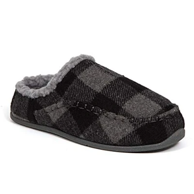 Deer Stags Mens Slippers, Grey/Black Plaid, 8 UK