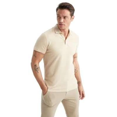 DeFacto Men's Polo Shirt, Stone, M