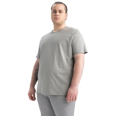 DeFacto Men's V7699AZ T Shirt, Grey, S