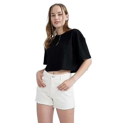 Trendy women's tops for the summer: perfect for the warm season High-quality women's T-shirt with a classic cut: a timeless basic for any wardrobe. COMFORTABLE ALL DAY WEAR - The ideal T-shirt for everyday wear. Versatile: Whether casual with jeans or chic with trousers, this t-shirt will go with any look. FASHION DESIGN & HIGH QUALITY: DeFacto women's t-shirt is a must-have for fashion conscious women.