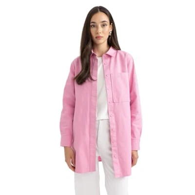 DEFACTO Women's long tops: perfect for summer. Lightweight and airy shirts for women, ideal for warm days and relaxed looks. Basic women's shirt: a must-have in every wardrobe. This timeless top for women is versatile and always on trend. WOMEN'S LONG SLEEVED SHIRT: Stylish and comfortable! This long-sleeved shirt for women offers comfort and elegance at the same time, perfect for any occasion. Summer tops women: fresh styles for sunny days! These women's tops are light, airy and add a summery touch to any outfit. DEFACTO Women's long shirt: an absolute must-have. This long cut top for women is versatile and guarantees a trendy look.