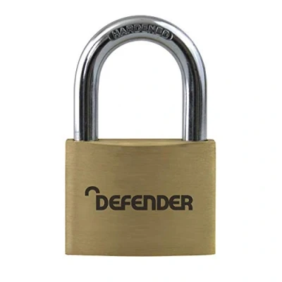 General description This DEFENDER Brass Padlock offers reliable security for various applications. Designed to resist opportunist attacks, it features a durable construction with a 40mm long shackle. The lock includes a 5-pin cylinder for enhanced security and is available with a keyed alike option for convenience. It comes complete with two keys and a two-year guarantee. Technical specifications Material: Brass Shackle length: 40mm Shackle type: Hardened steel, double locking (for sizes 30mm and above) Cylinder: 5-pin Guarantee: 2 years Compatibility and accessories Suitable for securing gates, lockers, storage units, and other items requiring padlock security Available with keyed alike options for multiple locks Installation Insert the shackle through the hasp or latch Turn the key to lock or unlock the padlock Usage Use to secure doors, gates, lockers, and storage units Ensure the shackle is fully engaged before locking