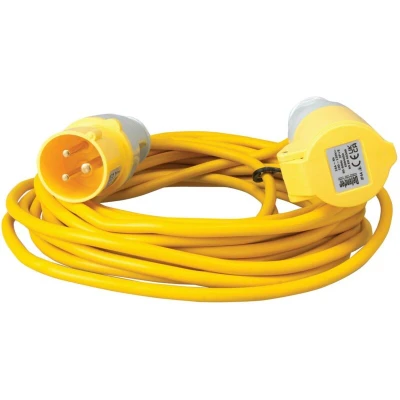 Industry-standard lead for use with many different power tool and lighting applications. A lightweight alternative to a cable reel and highly visible. Tested onsite for usability, durability and reliability. Cable performs at low temperatures for use all year round. VDE approved. Ingress rating IP44. Cable standard BSEN 50525-2-11. For use with power tools & lighting application Lightweight alternative to a cable reel Cable performs at low temperatures for year-round use Length 10m Voltage 110V Length: 10m Voltage: 110V Current rating: 16A Plug type: 16A/110V Cable Length: 14m Cable Type: 2.5mm Wattage: 1670w IP Rating: IP44 Dimensions: 250 x 250 x 50mm Weight: 1.72KG