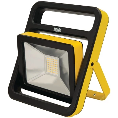 General description Powered LED worklight featuring powerful SMD LEDs that deliver 4000K of cool white light. Its slim, fold-flat design ensures easy transportation and storage, while the impact-resistant aluminium and ABS housing is built to withstand hard knocks. The folding stand and stable base allow for easy positioning, and it can also be mounted to a tripod (tripod not included). Technical specifications Power: 20W Voltage: 240V Light Color: 4000K (cool white) Drop-tested height: 1m Cable: 1.5m rubber cable (H05RN-F), 3G x 1mm² Frequency: 50/60Hz Compatibility and accessories Compatible with Umbrella-Type Telescopic Tripod (E206015)