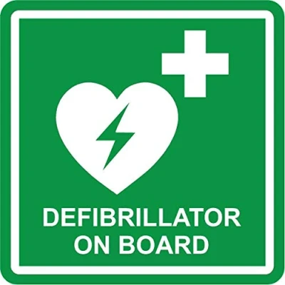 Defibrillator on board car sticker 100mm x 100mm Self adhesive vinyl Remove backing film and apply to dry, smooth, oil free surface. Digitally printed and laminated for extra durabillity