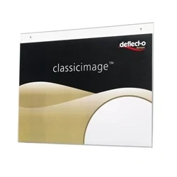 Size: A3. Landscape format. Sturdy clear plastic protects paper from damage. Top-loading design. Pre-drilled for wall mounting.