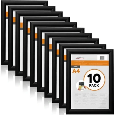 Deflecto A4 Snap Frame Pack of 10 Elegant Black Aluminium Clip for Wall Display Certificate and Poster Holder with Convenient Front Opening Clips