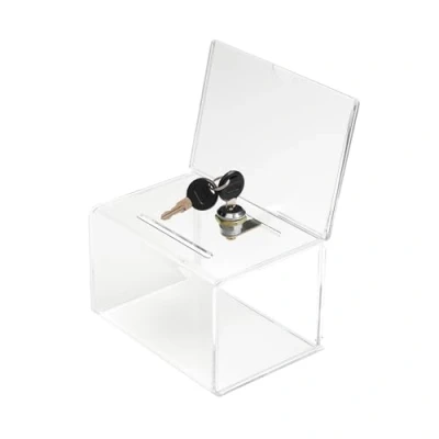 Great for business cards, coins, raffle tickets, entry forms etc Sign holder allows message to be eaily displayed Crystal Clear