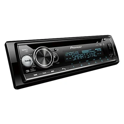 Car radio with RGB lighting: colour of the button and display lighting adaptable to any dashboard design, 1.5 A quick-charge USB port on the front panel Compatible with Pioneer Smart Sync App for Android and iPhone via USB and Bluetooth 3 pairs of high voltage preamp outputs, MOSFET 50: 4 x 50W max., 4 x 22W DIN sine, high and low p filters, 13-band equalizer, dynamic b enhancer RDS, FM/MW/LW, 24 station memory, CD drive, MP3/WMA playable Includes DAB antenna