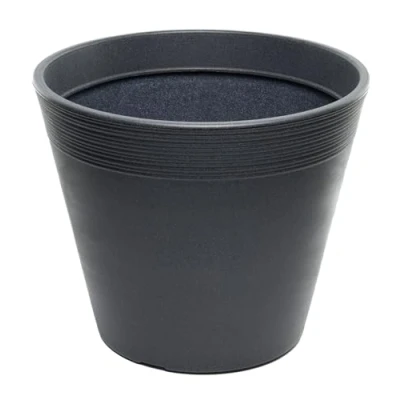 Dehner Groovy Plastic Pot conical Anthracite, Charcoal, 38 cm