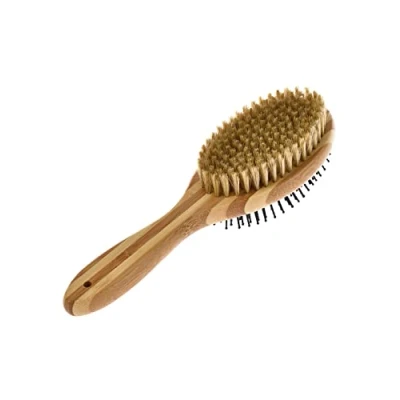 Double-sided brush for intensive grooming of dogs and cats Fine natural bristles remove loose hair, clean and care for the top coat Plastic tines detangle the coat and promote blood circulation Prevents matting and contributes to a shiny coat Grooming brush made from environmentally friendly, durable bamboo