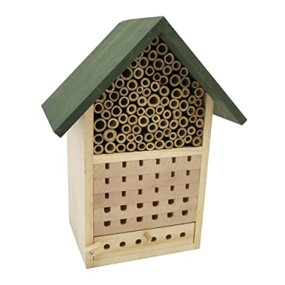 Nesting aid made from untreated natural wood: beech, pine and bamboo Especially suitable for wild bees and insects in the home garden Various hole sizes provide secure shelter Pull-out observation drawer gives up-close insights Win-win: residents of the hotel pollinate their ornamental and crops