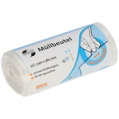 You will receive 100 waste bags (= 1 roll) . Capacity: 33 litres. Please note: these bin liners are only suitable for light office waste. . Dimensions: 540 x 580 mm, transparent International products have separate terms, are sold from abroad and may differ from local products, including fit, age ratings, and language of product, labeling or instructions.