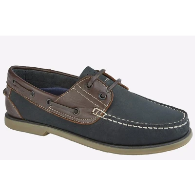 Timeless style is delivered in these Dek Saltburn men's shoes, boasting a classic Moccasin silhouette in a premium leather upper. Theon-trend navy colourway is complimented by dark brown overlays and designer contrast stitch detailing, for head turning visual appeal that is sure to impress. - Nubuck Leather upper - Classic Moccasin silhouette - Slip-on design - Intricate contrast-stitch detailing - Non Marking Stitched TPR Sole