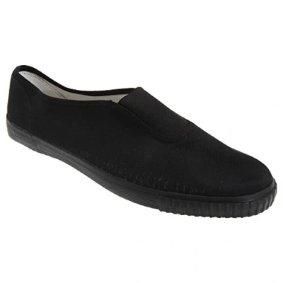 JUNIOR PLIMSOLLS: Provides essential, practical footwear with an easy-on gusset design, ideal for active children's daily use. ROBUST CONSTRUCTION: Crafted with a durable canvas textile upper and a resilient rubber sole, built for active junior wear. EFFORTLESS WEAR: Designed with a convenient gusset, making these plimsolls simple for juniors to easily pull on and remove independently. DEPENDABLE MATERIALS: Features a strong textile upper, comfortable textile lining, and a durable rubber sole for lasting junior comfort. VERSATILE BLACK STYLE: Offered in a classic black color and unisex design, ensuring these plimsolls complement various junior outfits.