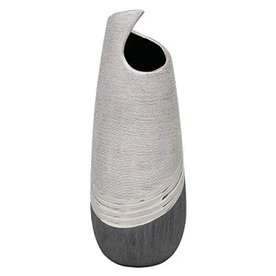 Elegant modern decorative designer ceramic vase in silver-grey. Dimensions of the vase (L x W x H): 12 x 12 x 32 cm. Elegant designer vase with silver stripe for a stylish and modern furnished room. Suitable for artificial flowers and cut flowers. The vase is an exclusive craftsmanship and impresses with its excellent workmanship. An item made exclusively for Dekohelden24