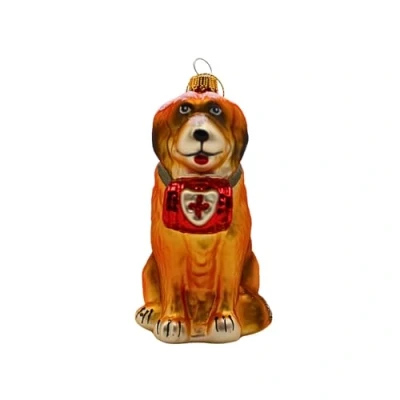 Dekohelden24 Lauscha Christmas Tree Decoration Bauble Glass Ornament St Bernard Dog in Brown L x W H 6 9 11 cm
