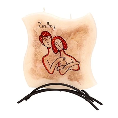 Dekohelden24 Zodiac Sign Gemini High Quality Flat Candle with Metal Stand, 16 x cm