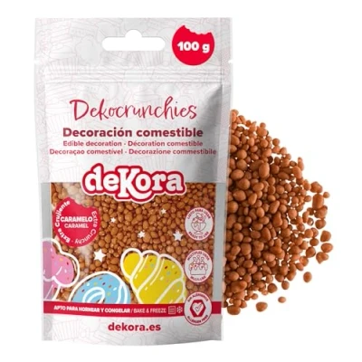 dekora Dekocrunchies Caramel 100g, Crunchy flavoured cake sprinkles, Edible sugar pearls for decorating, Topping cakes, cupcakes, cookies and desserts