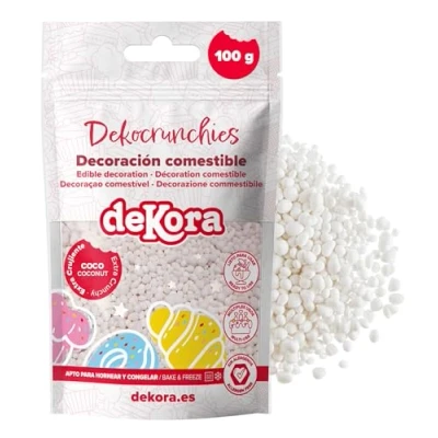 dekora Dekocrunchies Coconut 100g, Crunchy flavoured cake sprinkles, Edible sugar pearls for decorating, Topping cakes, cupcakes, cookies and desserts