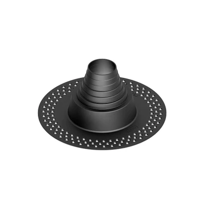 The DEKS Flat Roof Flat Seal Pipe Collar Black TPE is purpose-built for creating secure, watertight connections where pipes penetrate bituminous roofing systems. Designed with a tapered shank, it can be trimmed to suit a wide range of pipe diameters (90-200mm), making it a versatile and practical on-site solution.Manufactured from durable TPE, this pipe collar provides exceptional resistance to UV rays, ozone, and harsh weather conditions while maintaining flexibility even at low temperatures. Its robust design ensures long-term watertightness without compromising mechanical strength. Fully compatible with APP and SBS prefabricated bituminous felts and coats, the collar performs best when installed in a sandwich system between two membrane layers for maximum sealing efficiency.Features & Benefits: DEKS Flat Roof 90mm to 200mm Diameter Flat Seal Pipe Collar - Black TPE, Perforated flange enables excellent adhesion to bituminous membranes, Outstanding durability against UV, ozone, and extreme weathering, 100% compatible with APP and SBS prefabricated bituminous membranes. DEKS Flat Roof 90mm to 200mm Diameter Flat Seal Pipe Collar - Black TPE