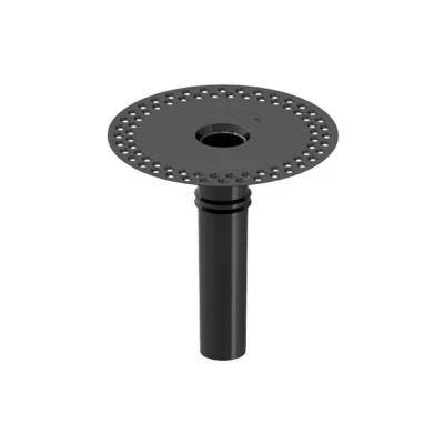 Engineered for use with bituminous membranes, this black TPE 60mm round roof drain outlet combines strength, flexibility, and durability in one simple solution. The perforated flange promotes strong adhesion with bituminous layers, ensuring a watertight seal that stands the test of time. Its slightly tapered spigot allows for straightforward installation into pipes of different diameters, saving time and ensuring a perfect fit on site.The outlet's ribbed interior design provides extra grip for gravel excluders or leaf guards, preventing clogs and maintaining efficient water flow. Manufactured from tough TPE, it offers exceptional resistance to UV, ozone, and chemical exposure, while remaining flexible even at low temperatures. A trusted choice if you want a reliable, long-life drainage component for flat roofs.Features & Benefits: DEKS Flat Roof Round 60mm Roof Drain Outlet - Black TPE, Perforated flange for bonding with bituminous membranes, Cone-shaped spigot enables quick, secure installation, Ribbed design locks in accessories for system efficiency. DEKS Flat Roof Round 60mm Roof Drain Outlet - Black TPE