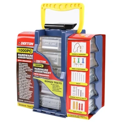 Comprehensive 1000-Piece Set: The Dekton Hardware Kit includes 1000 pieces of high-quality screws, nuts, bolts, washers, and anchors. Perfect for tackling various DIY, home repair, and professional projects, this kit provides all the essential hardware you need in one convenient package. Durable & Corrosion-Resistant: Each piece in the kit is made from durable materials, designed to withstand heavy use and resist corrosion. Ideal for both indoor and outdoor applications, ensuring long-lasting performance. Organized Storage Box: The kit comes with a sturdy, compartmentalized storage box that keeps all your hardware neatly organized and easily accessible. Each section is clearly labeled, making it easy to find the right part for your project. Versatile Applications: Whether you're working on carpentry, plumbing, or general home improvement, the Dekton Hardware Kit is designed to meet a wide range of project needs. Suitable for both amateurs and professionals, this set ensures you're always prepared. Ideal for Home & Professional Use: This versatile hardware kit is perfect for home repair enthusiasts, DIYers, and professional contractors. From assembling furniture to fixing appliances, the kit offers reliable solutions for everyday and specialized tasks.