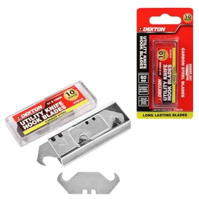 Dekton 10PC Hook Blade Set Ideal for Precision Cutting, Carpet Installation, and More Durable Steel Construction Versatile Blades Various Applications Compatible with Most Utility Knives