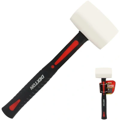 Dekton 16oz White Rubber Mallet Fibreglass Handle Non-Marking Paving Tiling The Dekton 16oz White Rubber Mallet is a versatile tool designed for both professionals and DIY enthusiasts. Its non-marking white rubber head ensures surfaces remain unblemished, making it perfect for delicate tasks such as tiling, carpentry, and assembling furniture The mallet features a durable fibreglass handle that absorbs shocks, reducing user fatigue during prolonged use. The ergonomic anti-slip grip provides enhanced control and comfort, even in wet conditions.