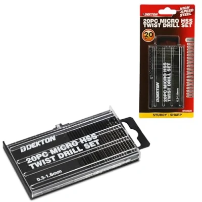 Dekton 20PC Micro HSS R Edge Twist Drill Set 118 Degree Angle Point High Speed Steel Ideal for Metal Drilling Versatile Wood & Plastic Precision Engineered Superior Performance