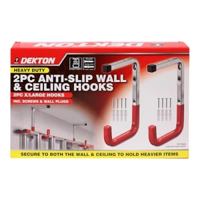 DEKTON 2PC 26cm x 15.5cm Wall & Ceiling Hooks Heavy Duty with Max Capacity of 40kg Ideal for Hanging Tools and More Durable, Rust Resistant Metal Construction Home, Garage, or Office