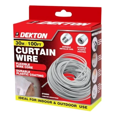 Dekton 30M Curtain Wire Heavy Duty Flexible for Hanging Curtains, Netting, & Voiles Easy to Cut Install Includes Fixings Ideal Home, Office or Outdoor Use Durable Rust Resistant