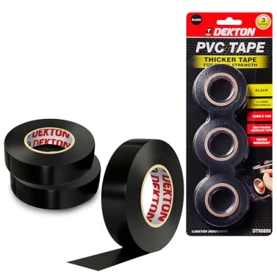 DEKTON 3PC Black PVC Insulation Tape Up to 600V Protection Self Fusing Adhesive Water Resistant for Durability Works in 0 8C Temperatures Strong, Reliable, and Long Lasting