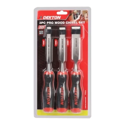Dekton 3pc Pro Wood Chisel Set 12, 18, 25mm Hardened Steel Blades Ergonomic Soft Grip Handles Ideal for Carpentry, Woodworking Durable & Precise Chisels Cutting, Shaping Sculpting