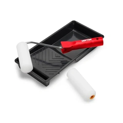 High-Density Foam Sleeves: The Dekton Gloss Set includes high-density foam rollers that deliver a smooth, even application of gloss paints and varnishes. Designed for professional-quality finishes, these foam sleeves ensure minimal texture and an impeccable, streak-free result. Versatile Compatibility: Ideal for use with both solvent-based and water-based products, these rollers provide versatile application options for a wide range of gloss paints and varnishes. Whether you’re working on home improvement projects or professional tasks, this set adapts to your needs. Durable Finish and Seamless Repairs on Nicks: Achieve a durable, long-lasting finish with these high-quality foam rollers. The robust construction ensures that the rollers maintain their shape and performance, providing a consistent, high-gloss surface without shedding or leaving behind roller marks. Complete Set for Convenience: The 4-piece set includes two 4" foam rollers, one paint tray, and one roller frame. This comprehensive set provides everything you need to start your painting project right away, offering convenience and eliminating the need for additional purchases. User-Friendly Design: The ergonomic roller frame ensures comfortable handling and efficient application, while the included tray makes loading paint and varnish a breeze. Designed with ease of use in mind, this set enhances your painting experience, making it ideal for both DIY enthusiasts and professionals., Manufacturer: Avron Trading Ltd